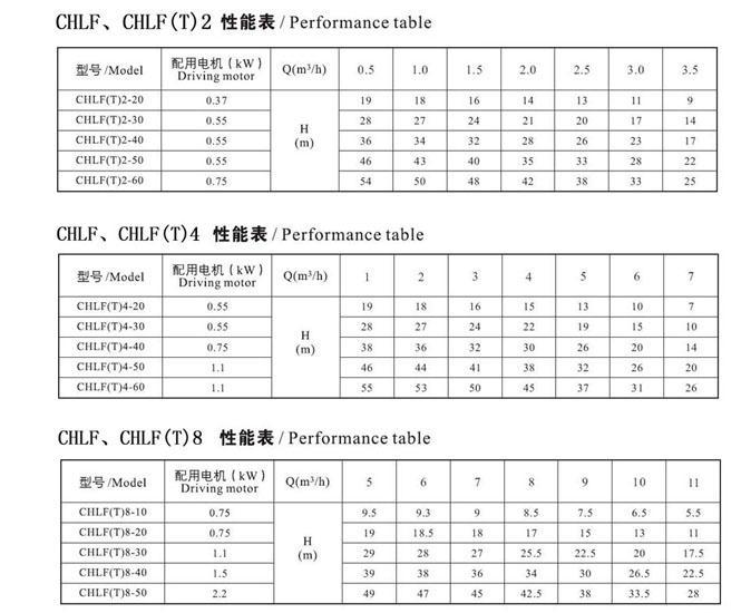 CHL,CHLK和CHLF(T)輕型臥式多級離心泵采用了免修機械密封。泵的過流部件均采用不銹鋼材料(304或316)制成,具有低噪音,耐輕腐蝕,外形美觀、體積小、重量輕、使用壽命長等特點。